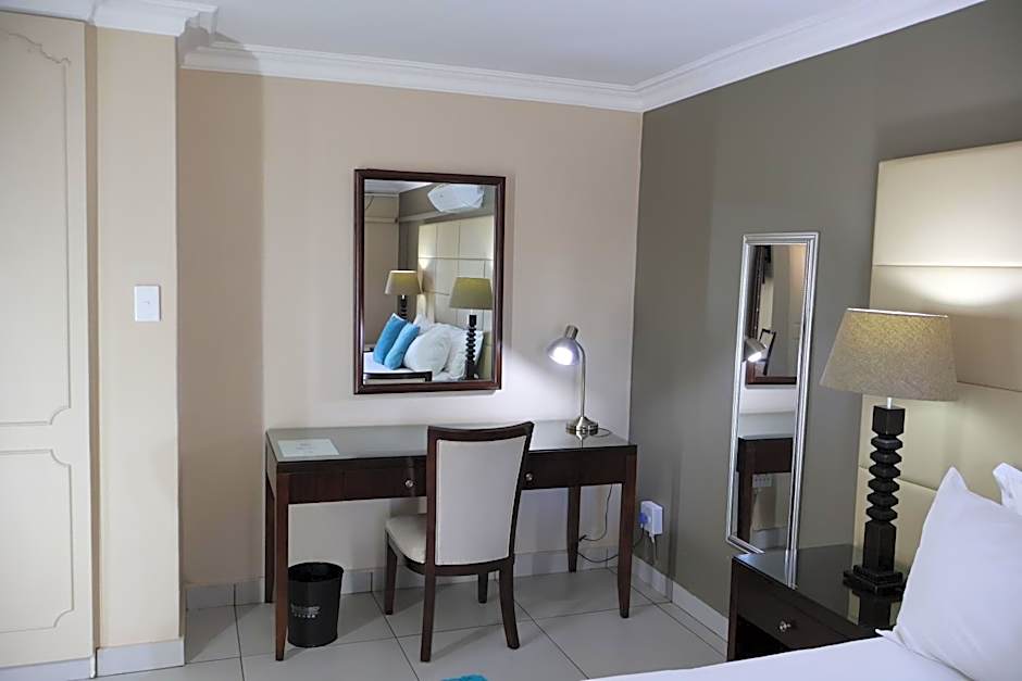 Guests at Airport Gardens Boutique Hotel have a variety of leisure amenities to enjoy during their stay. They can unwind at the outdoor swimming pool, take advantage of the water park, or relax at the sun deck and garden. The hotel also boasts an on-site restaurant named Poolside offering diverse cuisines including African, British, Greek, Indian, Pizza, Seafood, and International dishes. Moreover, the restaurant provides a family-friendly, modern, and romantic ambience.