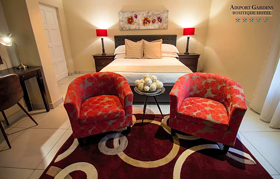 What are the room types available at Airport Gardens Boutique Hotel?