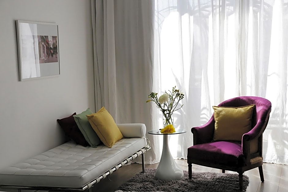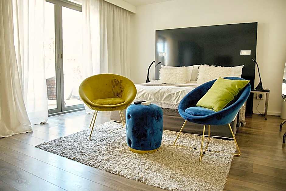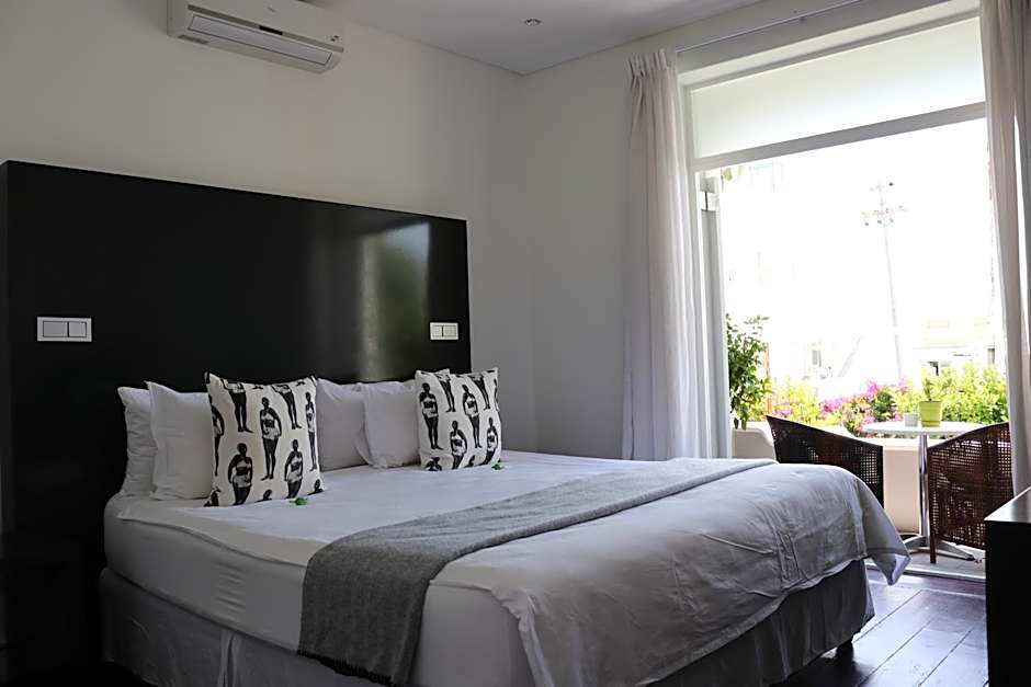 The DysArt Boutique Hotel offers a variety of rooms, including Large Luxury Double or Twin Room, Deluxe Double Room with Patio, and Large Deluxe Seafacing Double Room with Balcony. All rooms can accommodate 2 adults, feature non-smoking policy, and offer different bed configurations such as King or Queen size beds and sofa or twin beds. Room sizes range from 172 sqft to 495 sqft.