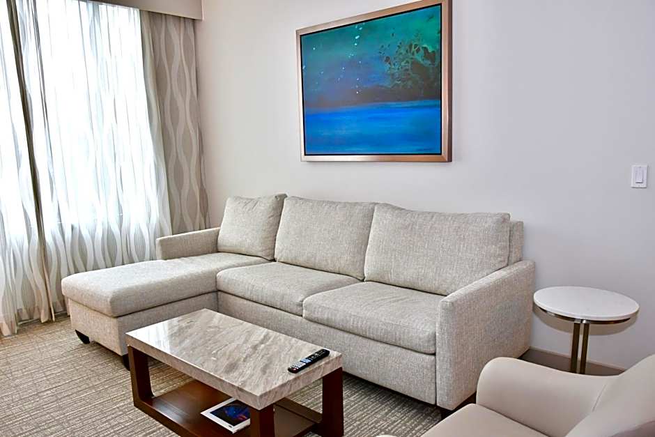 The hotel offers Studio rooms with a double occupancy, non-smoking policy, and a king size bed. Guests can also opt for One-Bedroom Suites, accommodating 2 adults and 1 child, with a king size bed and a larger room size. The Two-Bedroom Family Suite is a spacious option accommodating 4 adults and 3 children, with a queen and two twin beds, and a non-smoking policy.