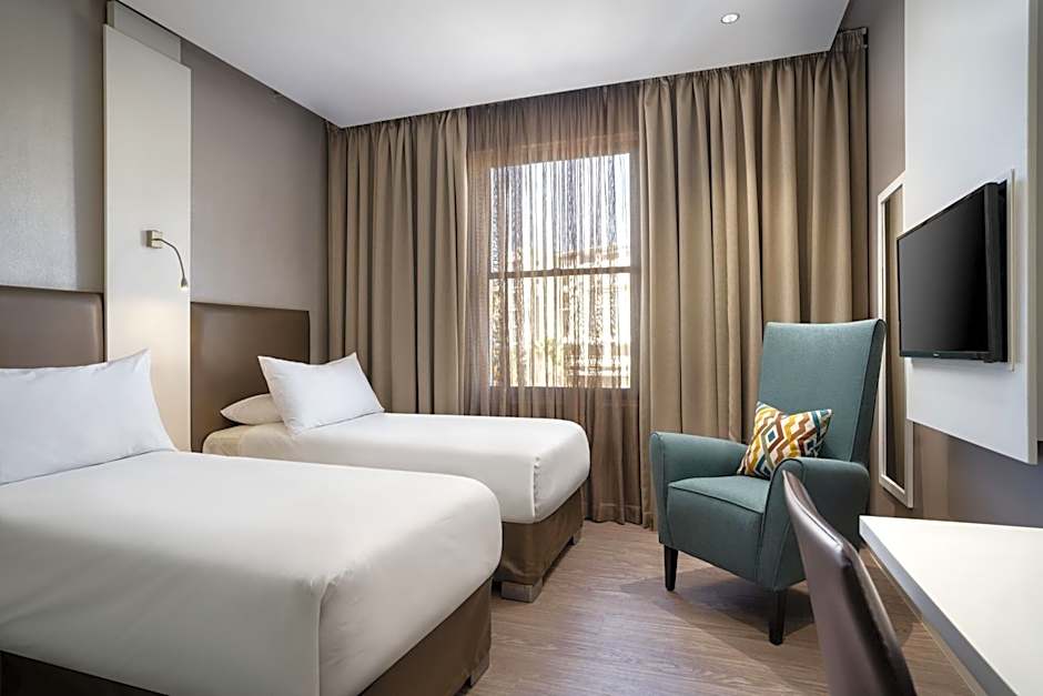 Bright, modern room with air conditioning. Additional facilities include a flat-screen TV with 14 channels, a work desk with international power sockets. The mini-bar fridge is stocked on request.