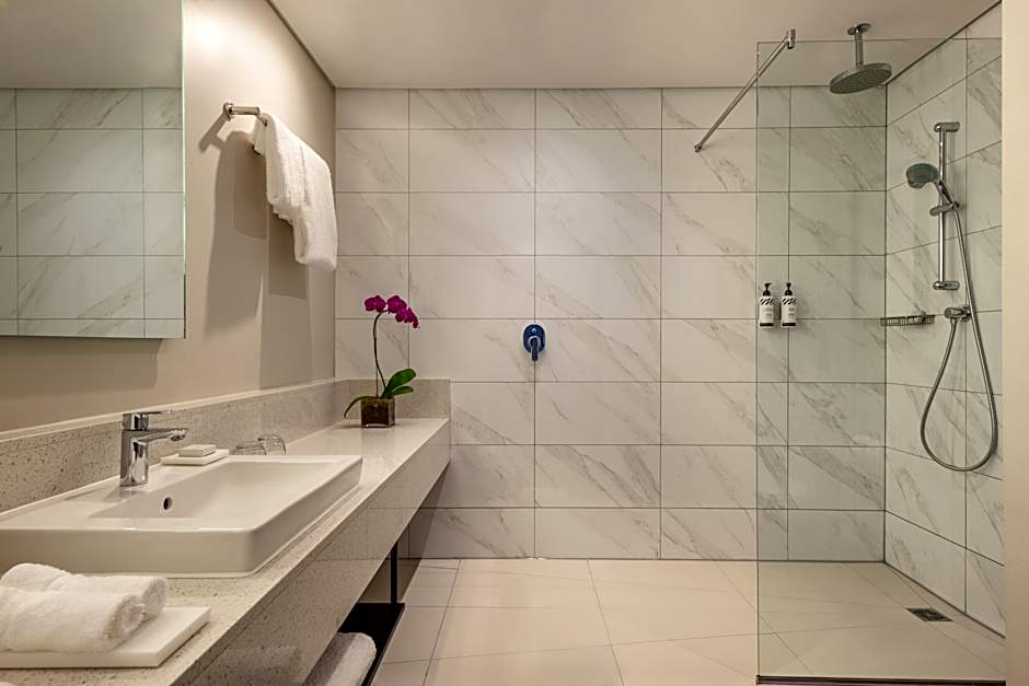 The hotel is very well located in the center of Cape Town, this enables you to walk from the hotel and visit highlights as Bo-Kaap, museums, etc. The service is excellent, employees are very friendly. Breakfast is one of the best we had in South Africa, plenty of choice, smoothies and excellent coffee you can prepare yourself. The room was huge and had view to the Table Mountain. The hotel has a shuttle to the V&A waterfront with very frequent trips. The hotel has access to its own parking, a huge asset in the center. Food in the restaurant is great