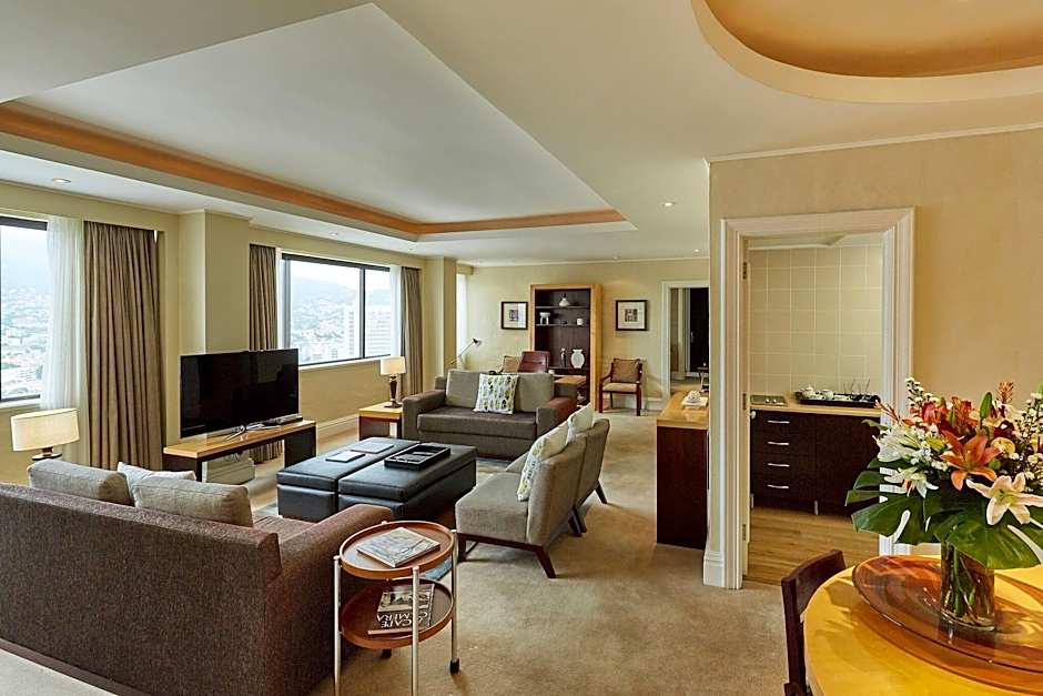 These spacious, air-conditioned rooms feature views of Table Mountain, Robben Island, or Table Bay. Each has an antique-style décor and an en suite with a bath and shower.