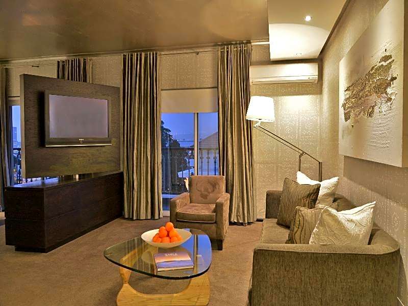 This modern and spacious suite has a lounge and bedroom, divided by a TV unit that rotates for viewing from all rooms.