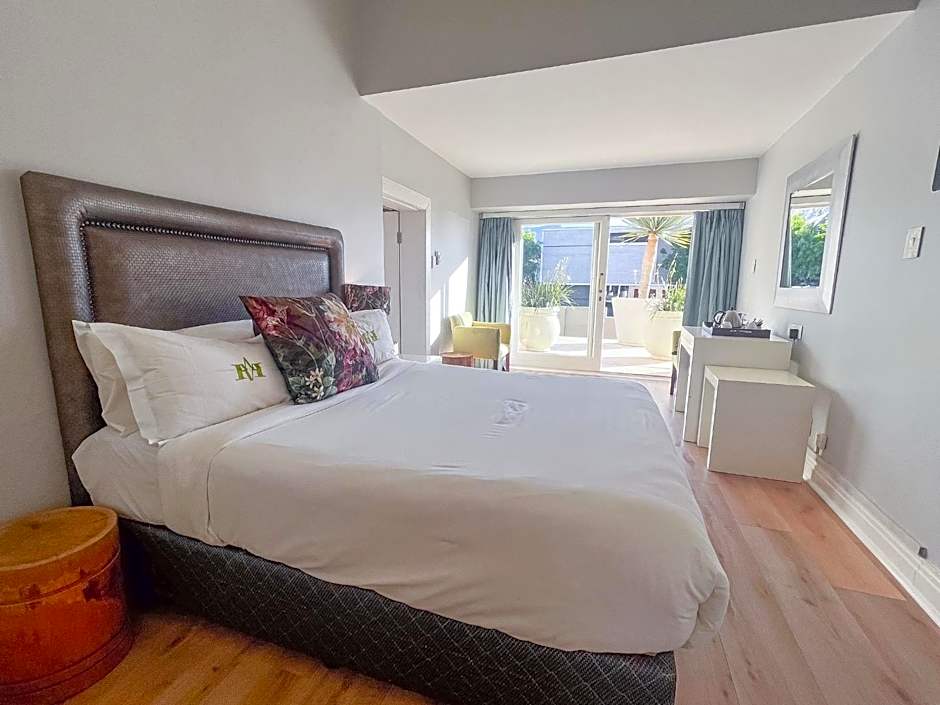 This room opens out onto a furnished balcony with views of Table Mountain and the pool. The marble bathroom comes with a heated towel rack and free toiletries.