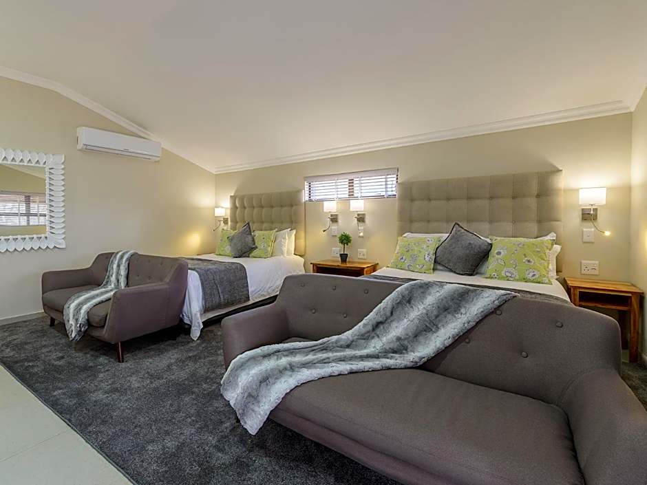 Designed to accommodate up to four adults and an infant under 2 years old in a cot (on request), this unit is the ideal choice for families. This non self-catering suite features a king-size bed, two single beds, and a modern bathroom. There is also a convenient coffee station and bar fridge, a cozy fireplace, as well as a private patio, making this unit the perfect place to have a wonderful holiday in the Berg.