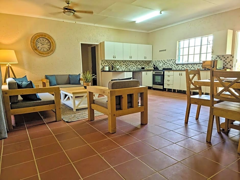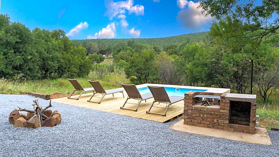 Zebra Villa is an elegant luxury self-catering retreat with 5 bedrooms, 5 bathrooms, a fully equipped kitchen (including dishwasher and freezer), air conditioning, a private pool, and a BBQ area—all with breathtaking views of Zebra Nature Reserve.