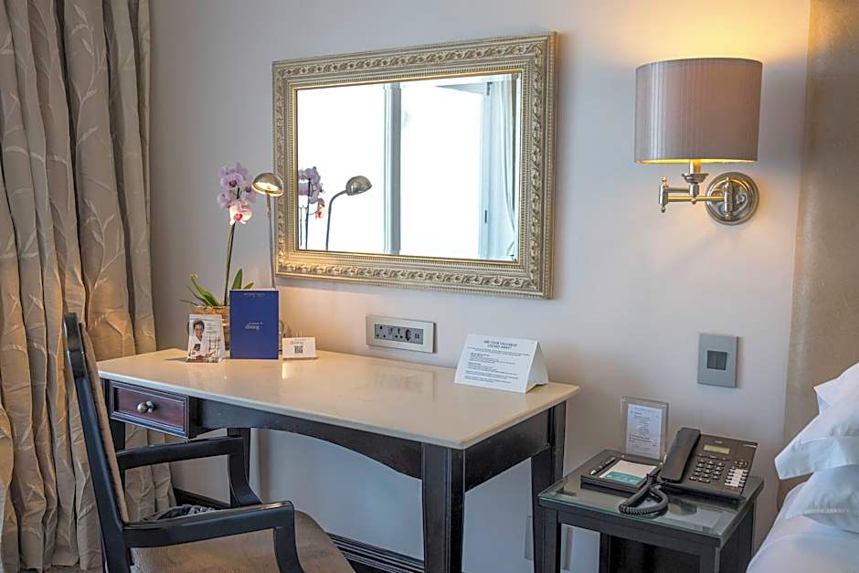 This large suite is equipped with a separate lounge and dining room. There is a stocked bar and a private balcony. The private bathroom is fitted with a separate bath and shower. Amenities include a bathrobe, slippers and a hairdryer.