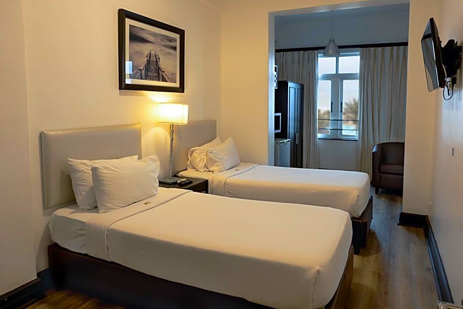 This family room has an electric kettle, satellite TV. This bright room features views of the Indian Ocean and a private bathroom with free toiletries. Each has 2 satellite TVs, and a safety deposit box. It has 1 double bed and 2 single beds.