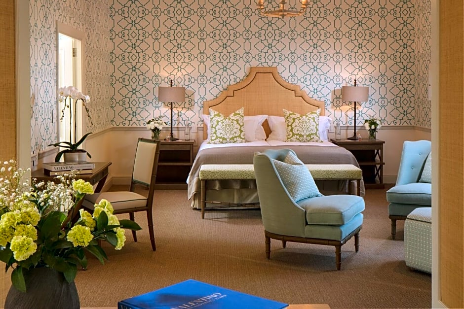 This spacious room is elegantly decorated and features a seating area, a flat-screen TV with a DVD player.