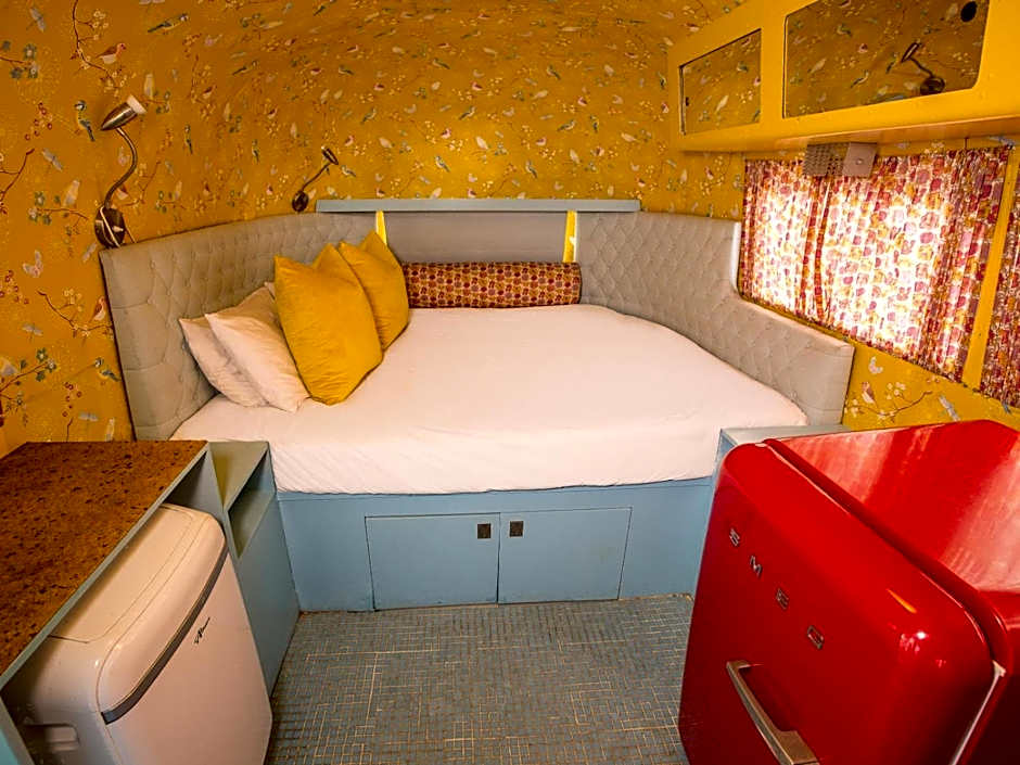 These trailers each feature a unique, themed interior designed by a local artist. They also come with air conditioning, heating and a seating area.