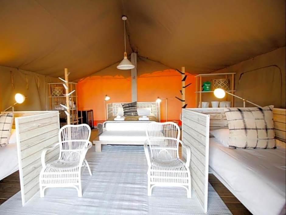 This tent features a hot tub. The tent features a seating area, a mini-bar and a coffee machine. The unit has 6 beds.
