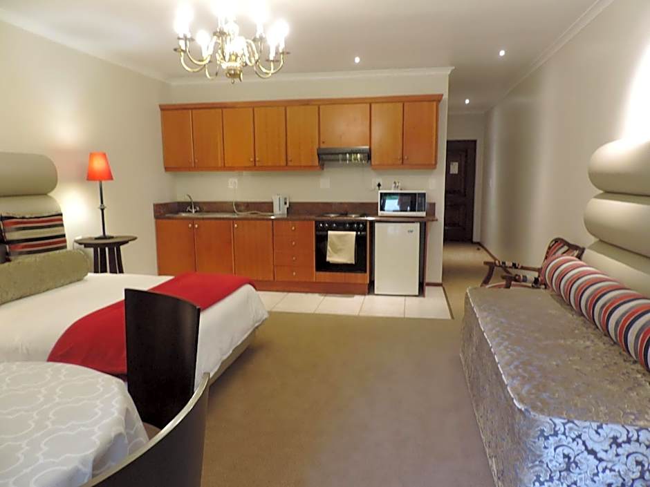 This luxury room has a private entrance and patio. The kitchenette is fully equipped. The room has a queen size bed as well as a twin bed - which makes it suitable for 2 or 3 people. Bath and walk-in shower. Access to garden. Please note: The rate quoted is only for 2 adults. This room can accommodate a maximum of 2 adults and 1 child or 3 adults. Supplement charges apply for the additional child or adult (see Hotel Policies for charges).