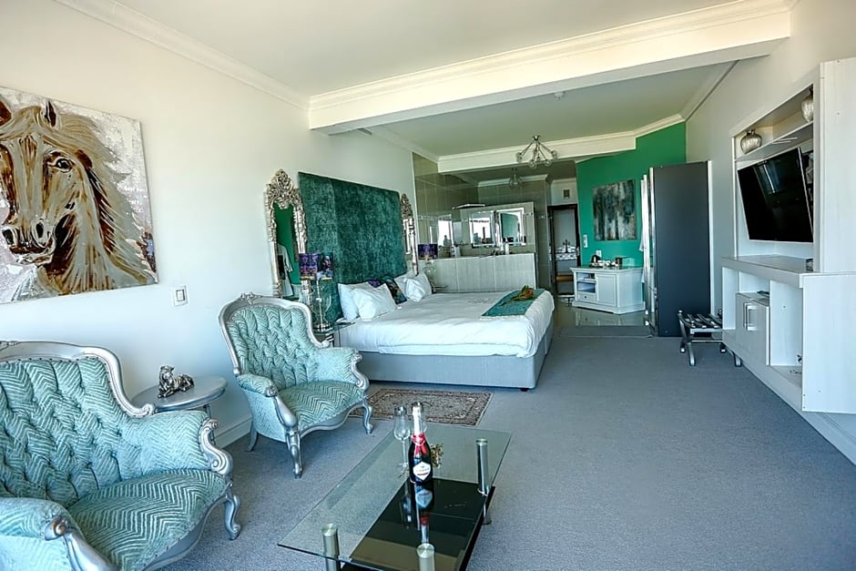 This suite features a spacious bedroom with inside seating area with panaromic sea views. It offers a bathroom with spa bath and shower.