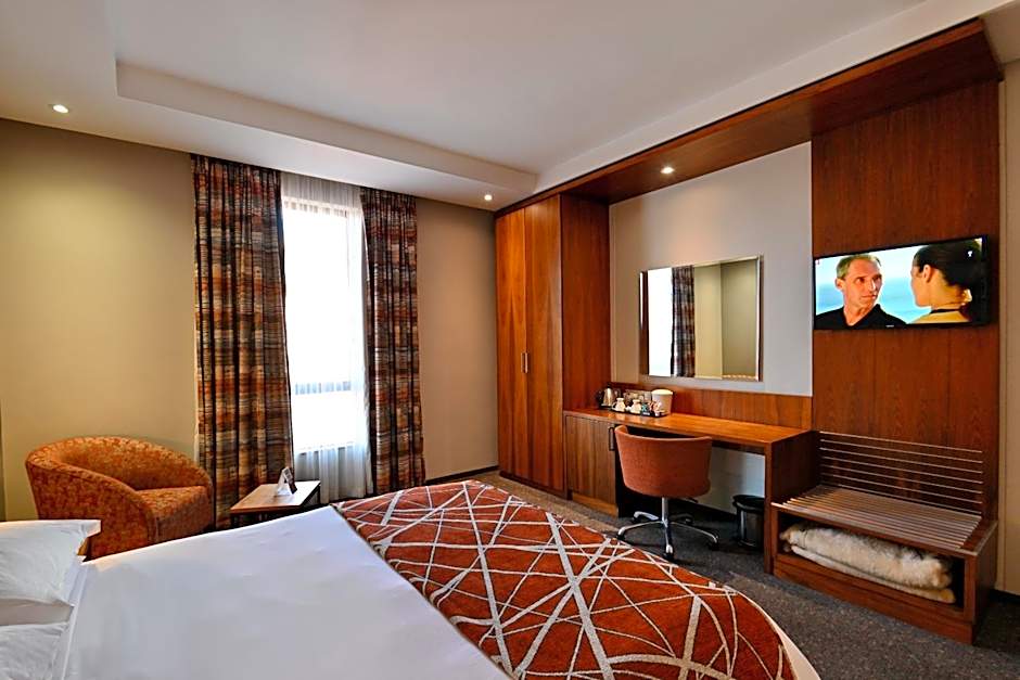 The twin room features a carpeted floor and heating, as well as a private bathroom featuring a bath or a shower. The air-conditioned twin room provides a flat-screen TV with satellite channels, a wardrobe, a safe deposit box, an electric kettle as well as city views. The unit offers 2 beds.