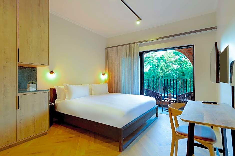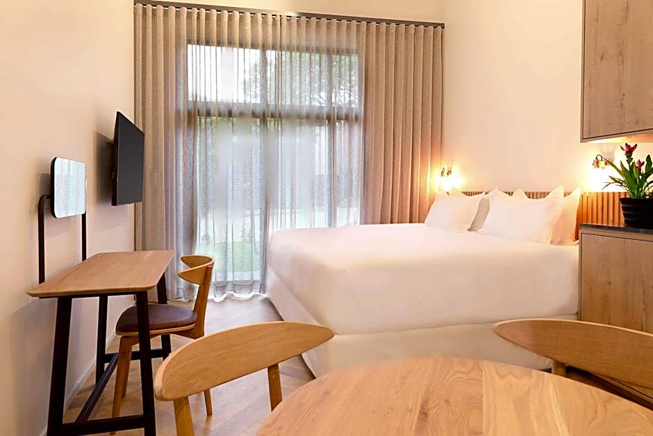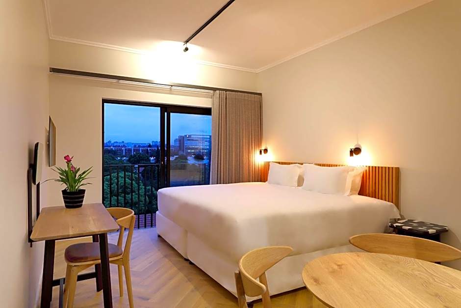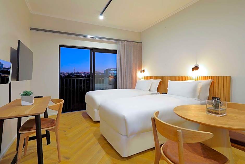 The hotel offers King Studios and Twin Studios. Both room types have a room size of 248 sqft, accommodate up to 2 adults with no children, and do not allow smoking. The King Studio has 1 King-size bed, while the Twin Studio has 2 Twin beds.