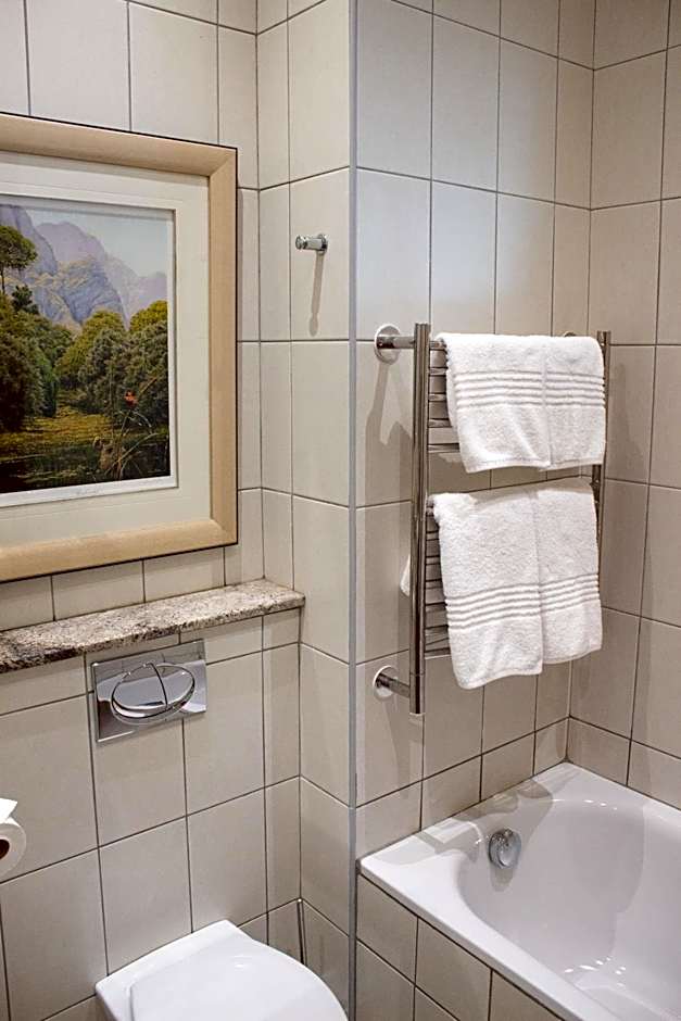 This spacious 118 ft² air-conditioned room has a flat screen satellite TV, generous working desk, complimentary bottle of water, tea-and-coffee station plus espresso coffee machine, free Wi-Fi and private bathroom with shower and baths. The room also offers generous cupboard space for long-stay guests.