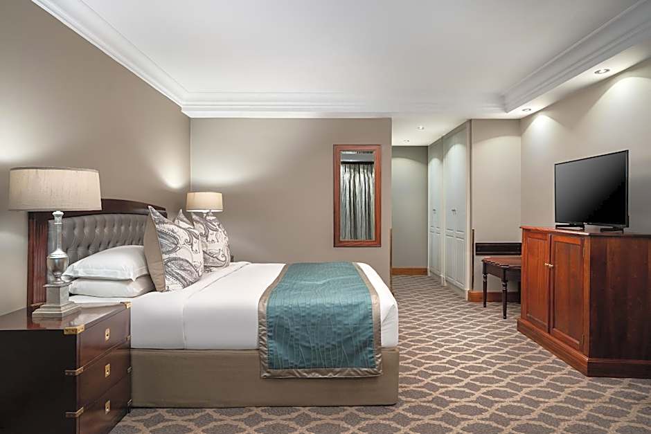 This spacious 95 ft² air-conditioned room has a flat screen satellite TV, generous working desk, complimentary bottle of water, tea-and-coffee station, free Wi-Fi and private bathroom with separate bath and shower plus heated towel rail. Please note, extra beds cannot be accommodated in this room.