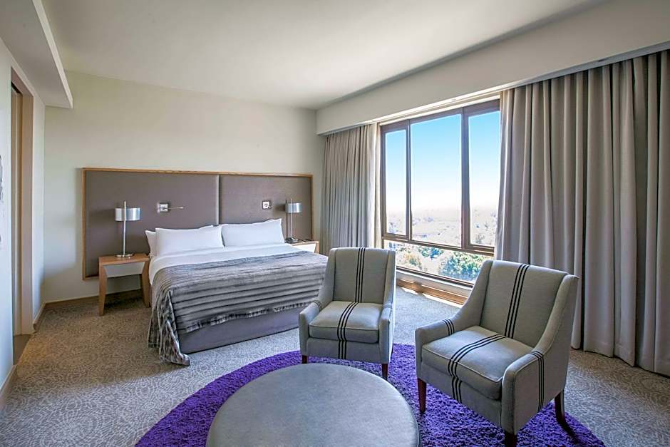 This air-conditioned room features a view of Johannesburg’s northern suburbs. It comes equipped with a flat-screen satellite TV, DVD player and iPod docking station.
