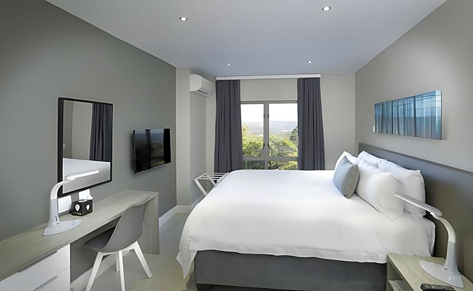 We have travelled quite a bit and no where have we experienced such friendly, efficient staff - from our warm welcome by Patricia at security, to check in, pub, housekeeping, and cleaning staff. Room was clean and air conditioned with fresh bottles of water everyday. Parking, swimming pool and small gym on site Location was great as we could walk to Rosebank mall and restaurants - all within 10 minutes. Hence the 5 star rating. Keep it up.