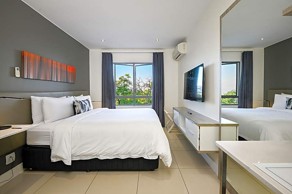 The hotel offers One-Bedroom Apartments, Two-Bedroom Apartments, Standard Double Rooms, and Executive Double Rooms. The accommodations include king size and twin beds, ranging from 291 to 1044 sqft, accommodating up to 4 adults and 2 children. Smoking is not allowed in any of the rooms.