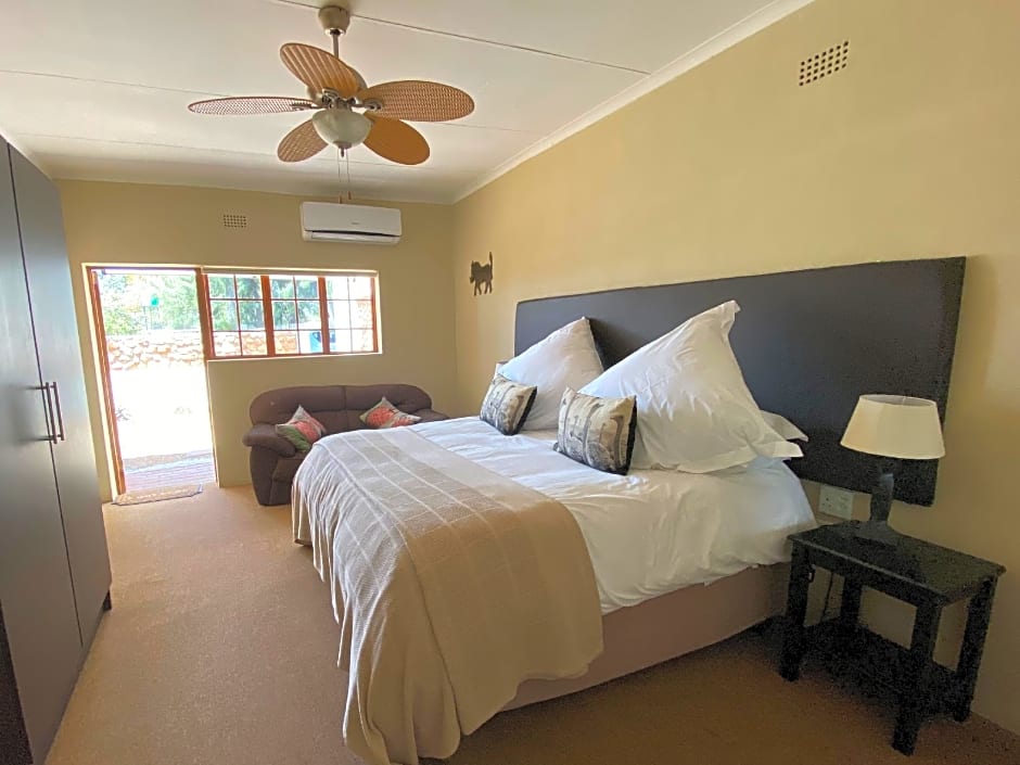 Featuring a patio with a view of the garden and dam, this spacious room includes a flat-screen satellite TV, a fully equipped kitchenette, electric blankets and air conditioning. The private bathroom is fitted with a shower. Barbecue facilities are available on request.