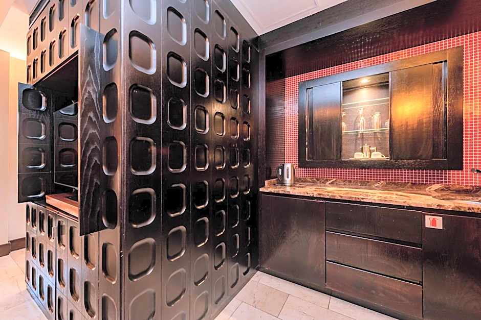 Nature One Bedroom Residence is 1765 square feet and includes a king-size bed 150-183 width plus living room, balcony, terrace, desk, hairdryer, tea and coffee making facilities , ironing set, safe, bathrobes, and slippers.