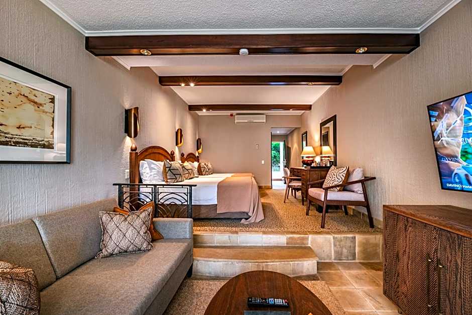 This spacious, air-conditioned room is decorated in warm colors and features dark wood furnishings. It offers a lounge area and patio.