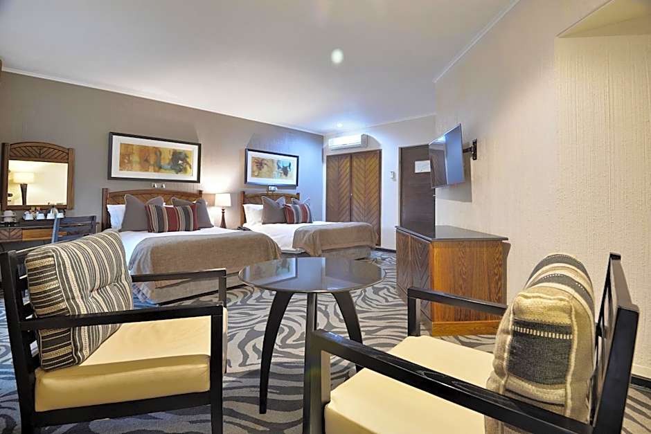 Set in Ledig with garden views, invites travelers to unwind in a relaxed, safari-inspired atmosphere. The grounds center on an outdoor pool with a waterslide and a sun deck, complemented by an on-site Kwa Lefikeng Restaurant and a welcoming bar. Wellness-minded guests can explore Spa/Wellness packages, and free WiFi and a 24-hour front desk help keep plans on track, while a tour desk helps plot the next South African adventure.