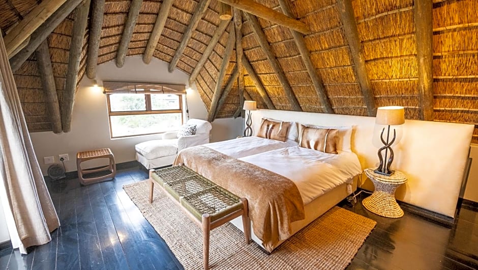 Includes game drives for half and full board bookings. This room is built as a thatch, domed structure and it features a skylight above the bed. It has a private dressing area behind a screen and features a fireplace. The private bathroom has a deep bath and a walk-in shower with twin basins. Please note that this room cannot accommodate extra people. Please note that this room cannot accommodate children under the age of 12 year old.