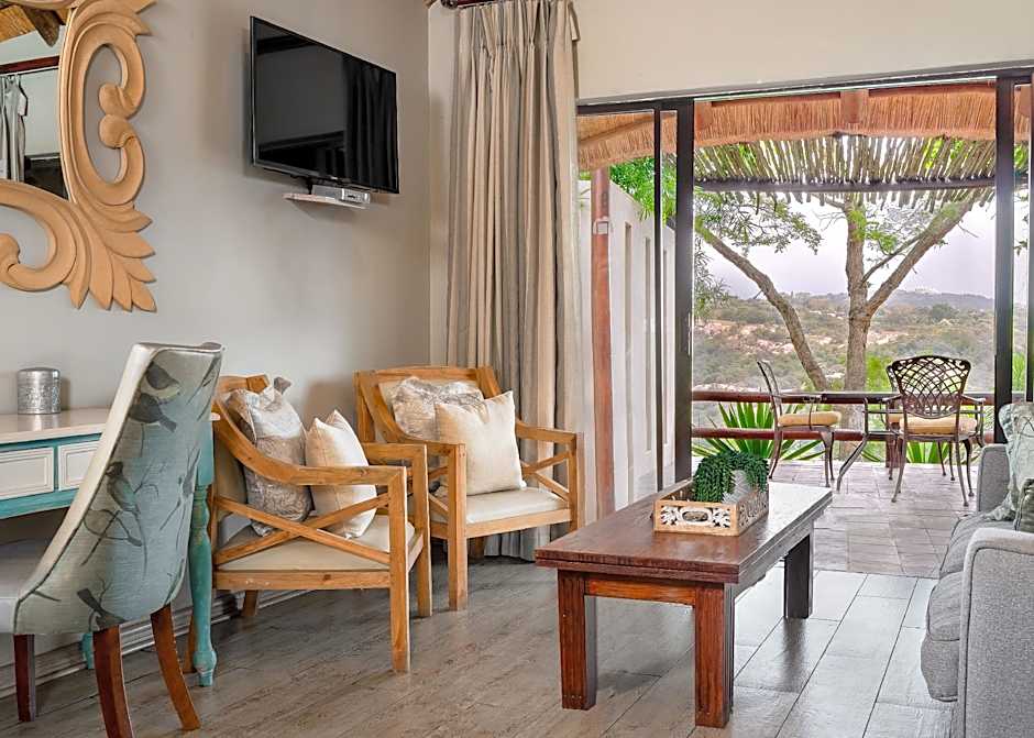 Offering a panoramic view of the nature reserve, this very spacious suite has a bedroom, bathroom and outside shower. It features a fully equipped open-plan kitchen and dining area, opening out onto a patio.