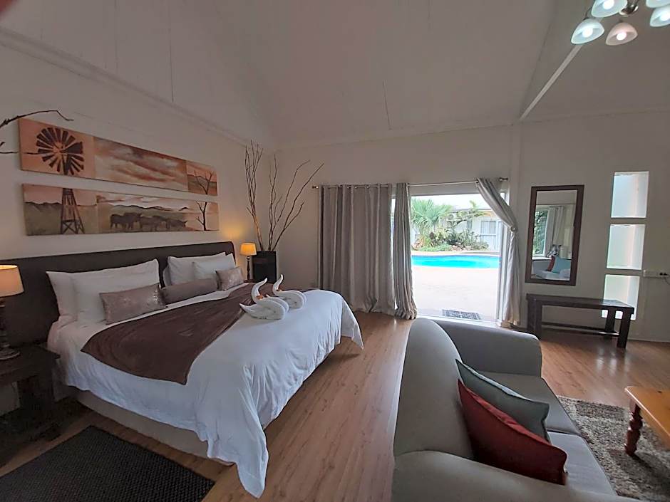 Wake up to the picturesque views of the pool and surrounding landscape in the comfortable Tent rooms at Rockview Lodge. With cozy accommodations for two adults and one child, these well-appointed rooms offer a peaceful retreat amidst nature. Guests can relax in the privacy of their own space, unwind on the sun deck, or take in the fresh air in the beautiful garden. The Tent rooms provide a relaxing escape for travelers seeking a serene getaway in Nelspruit, South Africa.