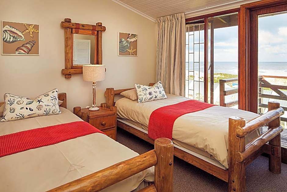 This 3-bedroom chalet is accessible by stairs and features views of the Indian Ocean. The main bedroom is located on the upper level and features private balcony. The second and third bedrooms are on the lovwer level. There is an open-plan lounge, kitchen and dining area. The dining area has a dining table with chairs and the lounge has a flat-screen TV with selection satellite channels. Sliding doors from the lounge area lead onto the patio with a seating area as well as private BBQ facilities. The kitchen has a full-height fridge and freezer, 4-plate electric stove and oven, toaster, microwave and electric kettle. The private bathroom has a bath, toilet and basin, while the second bathroom has a shower, toilet and basin. The accommodations offers an open, secure parking bay.