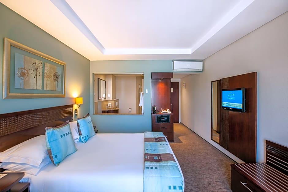 Located in the Lynnwood neighborhood of Pretoria, this hotel balances business-ready spaces—free business center and meeting/banquet facilities (extra charges)—with relaxed options like a kid-friendly buffet and on-site dining. Shuttle service and an airport shuttle are available for an extra charge, and parking on site remains free.