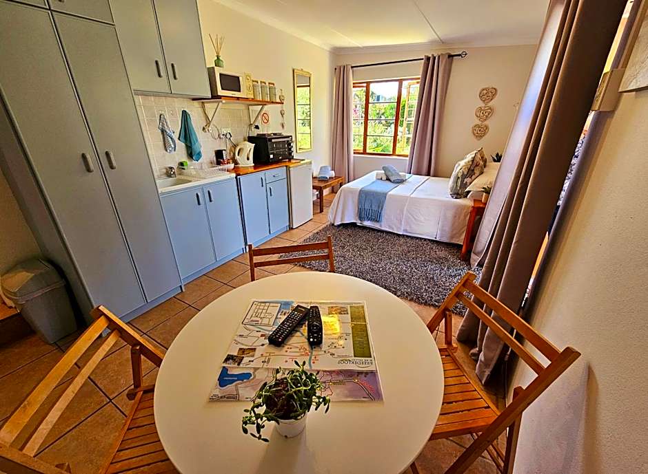 Studio - Charming and private, this self-catering garden cottage features a fully equipped mini kitchenette, a double-size bed, with private bathroom, and a patio overlooking the pool.