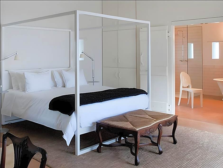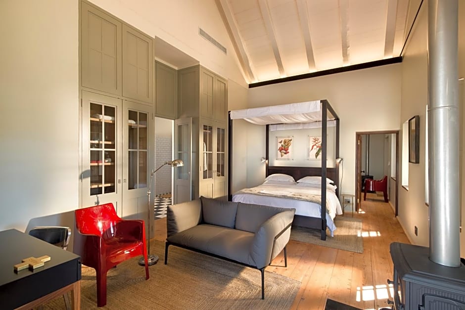 These open-plan suites feature a lounge area, luxurious private bathroom and boast contemporary furnishings. It also has under-floor heating, a fireplace and the mini-bar is included. The suites offer views of the garden or vineyard.