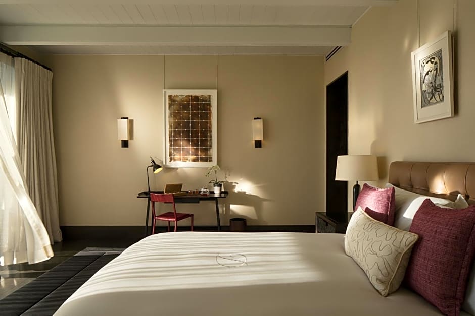 The hotel offers a variety of rooms, including Superior Villas with Private Pool and Vineyard Views, and the Presidential Villa with Private Pool. The accommodations can generally accommodate up to 4 adults and 1 child, with bed options ranging from twin beds to king-size beds. Smoking is not allowed in any of the rooms, and the room sizes vary, with the largest being 1399 sqft.