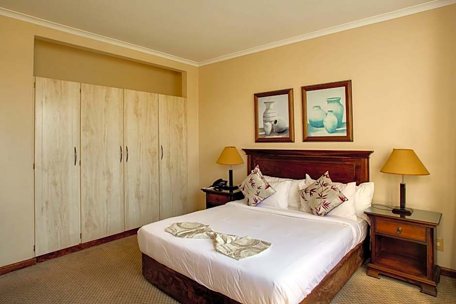 Guests at Riviera on Vaal Resort can indulge in a variety of leisure amenities. The hotel offers an outdoor swimming pool for a refreshing dip, and a separate kids' pool to keep the little ones entertained. For those seeking relaxation, the spa and sauna provide a serene escape. Golf enthusiasts can enjoy a round at the on-site golf course, while tennis courts and mini golf provide additional recreational opportunities. The hotel's family-friendly restaurant, Matthews Restaurant, offers Mediterranean cuisine, catering to a diverse palate. This makes it convenient for guests to enjoy delicious meals without leaving the property. Furthermore, the lush sun deck, picnic area, and beautiful garden present ideal spaces for unwinding and enjoying the scenic river view, ensuring a memorable and leisurely stay for all guests.
