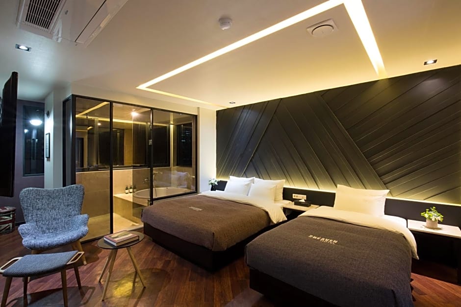 At the 2 Heaven Hotel Seomyeon, you're not just booking a room; you're securing a one-of-a-kind experience! Every corner of the hotel is designed to ensure your stay is as fun and vibrant as the city around you. Whether you're slipping into your tranquil Business room or enjoying the luxurious space of the Penthouse, you’ll find that each room is thoughtfully outfitted to create your personal sanctuary. Bask in the comfort of rooms that accommodate couples and families alike, and enjoy spacious layouts perfect for unwinding after a thrilling day of exploration.