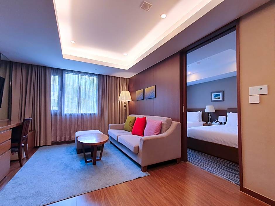 A varied slate of rooms accommodates different groups, from Standard Twin Rooms to family-focused options like Standard Family, which accommodates up to 8 adults and 4 children. Deluxe configurations—such as Deluxe, Queen and Deluxe, 2 Twin—offer additional space and comfort, with upper floors reachable by elevator for easy access after a day of exploring Busan.