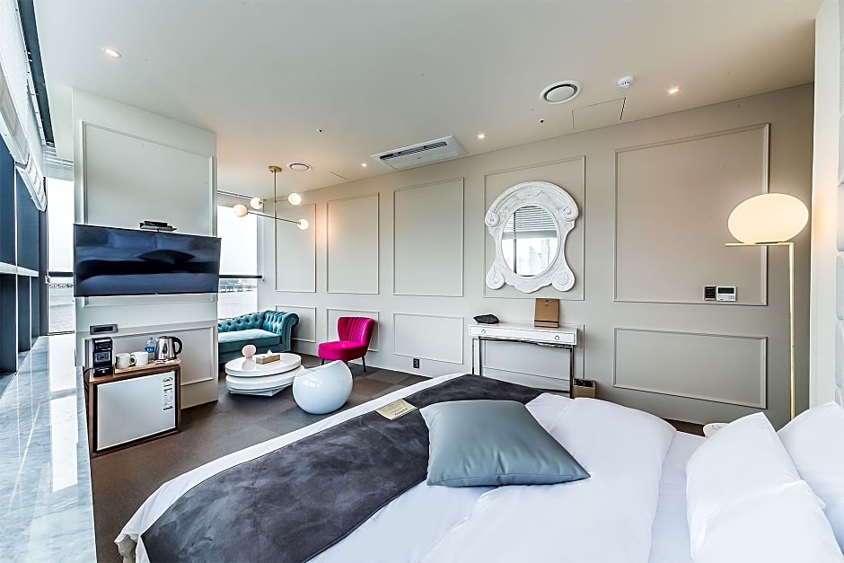 Room had a really cool vibe, and so did the rest of the hotel. The staff at Reception were super nice! Check-in & check-out were super fast and easy. Bed was HUGE, and views of the lights at Gwangalli Beach looked amazing from our balcony. It got easily warm in that part of the room, but the AC worked perfectly so we had a comfortable stay. Also loved the fact we had two light robes and slippers available in our room :)