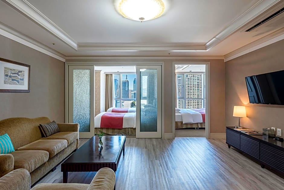 Across a broad range of room types—such as suites, deluxe, standard, and family configurations—amenities include extra-long beds, bidets, and in-room kitchen facilities like kitchenware and kitchenette. For events, meeting/banquet facilities are available (extra charges). Payment options accepted include cash and Mastercard, JCB, Visa, American Express, Maestro, BC-Card, and UnionPay.