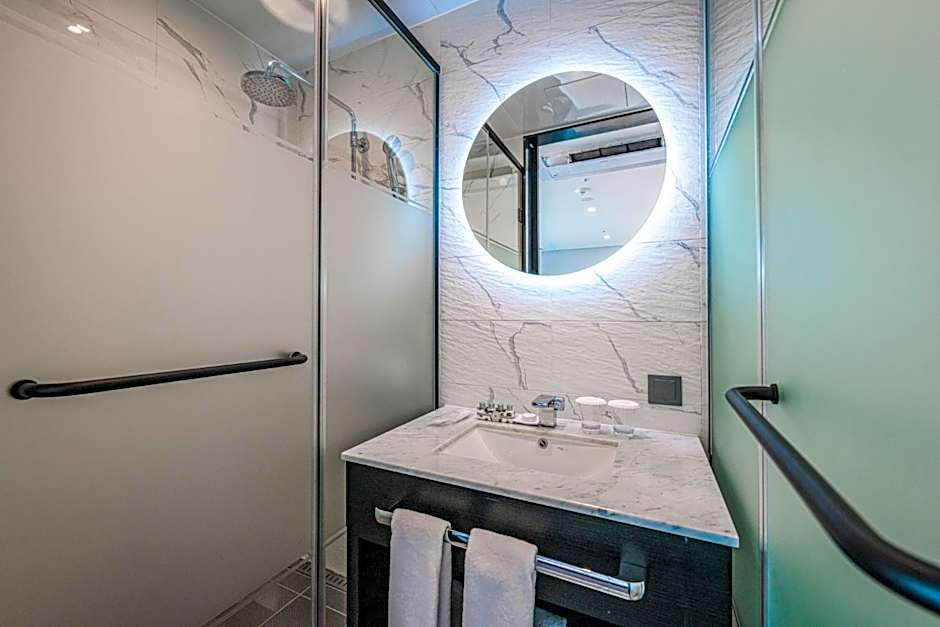 Smart, modern and comfortable rooms. We booked two rooms - a double standard ocean view and a twin standard ocean view. They were next to each other and both had large floor-to-ceiling windows overlooking the water. The view was interesting, with fishing boats in the harbor below, and the high-rise flats and mountains on the other side of the water. There were tea-making facilities and a seating area and desk, which could be separated from the bedroom with sliding glass doors if needed. There is a Starbucks also with a lovely view (good for affordable breakfast) just a few minutes' walk away. It is directly opposite the hotel, just on the other side of the fishing harbour.