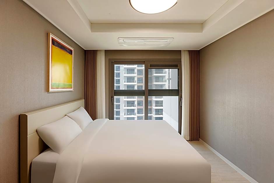 The property felt brand new and was immaculately maintained, with a clean and comfortable room. The view was good and the bedding, furniture, nearby dining options and amenities were all very satisfactory. I particularly appreciated the availability of extras such as bed guards for children, which was a thoughtful touch for families. Communication via KakaoTalk was also excellent, with quick and helpful responses. Overall, a most enjoyable stay!