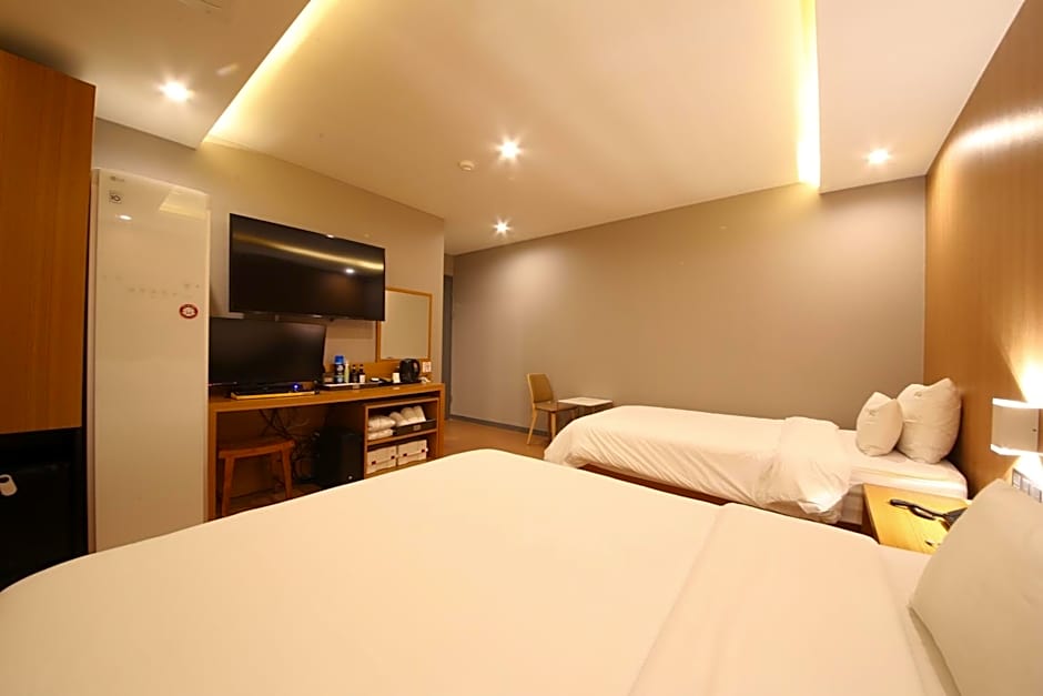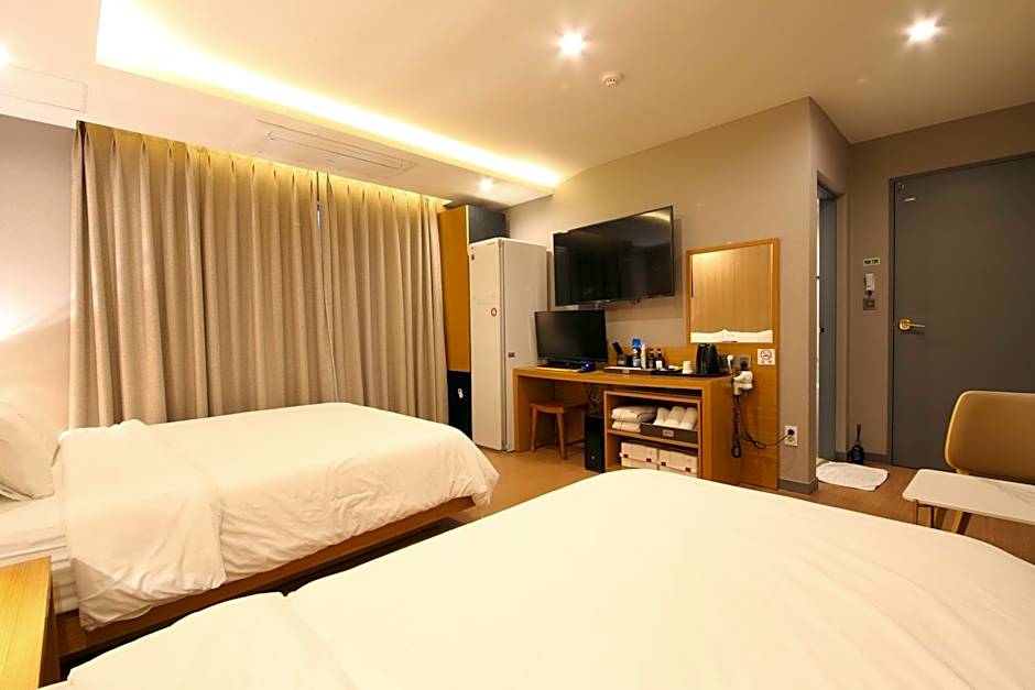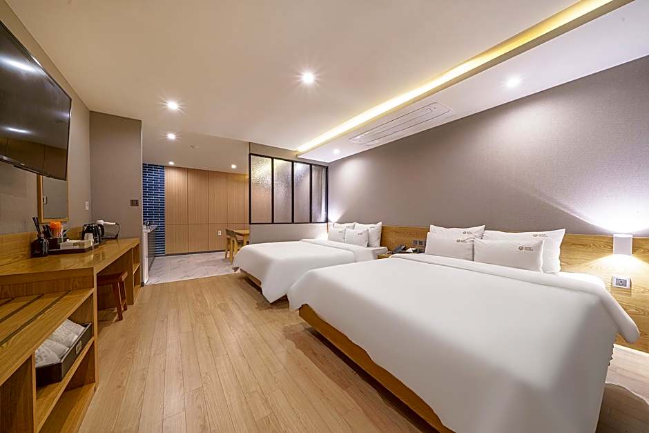 Upper floors are accessible by elevator, and parking on site is free. This combination of practicality and comfort makes for a traveler-friendly stay in Busan.