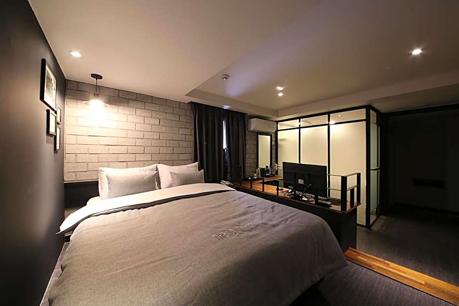 When I arrived way too early, no one was at the desk. When I came back, someone was there and very kindly let me store my luggage until I could be shown a room. The room I was originally led to was big but dusty and depressing, and the bathroom drain there was totally clogged. The vinyl sofa was tattered and had pieces of tape on it, and visible grime in the seams, so that I didn't even want to put my bag down on it. I apologetically asked for one of the rooms with the layouts I'd seen pictured, with the slightly lofted bed area. To my relief, that's exactly what I got. I also wouldn't have wanted to go around the edges of this room with a microscope, but it was clean enough to feel comfortable, and the water went down the drain in the bathroom, no problem. Enjoyed the added bonus of a tub, especially since I did some ocean swimming while staying here. Something else I loved was a big desk area and a legit desktop computer! After I cleaned the gross keyboard myself with some wipes, I actually got quite a bit of work done. On foot, the location was just amazing - up in the hills of Nampo, tucked away from the main drag of shops and neighbored by fun bars and an elevated temple halfway up to Yongdusan Park with Busan Tower, and walking distance from the Lotte Mall, Jagalchi fish market on the waterfront, and all the rest. I'd gladly stay here again when in a certain mood - and it's certainly a great value.