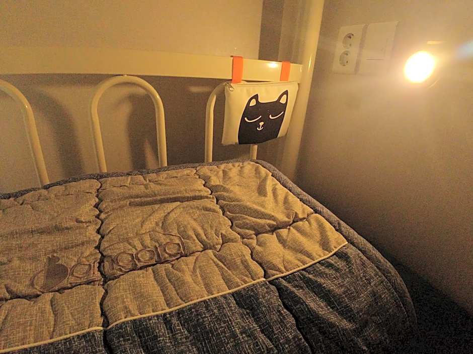 I found the beds a bit hard but after all I slept very well, so I won't say it's negative. And the place is pretty clean and smart-concieved for young travelers.