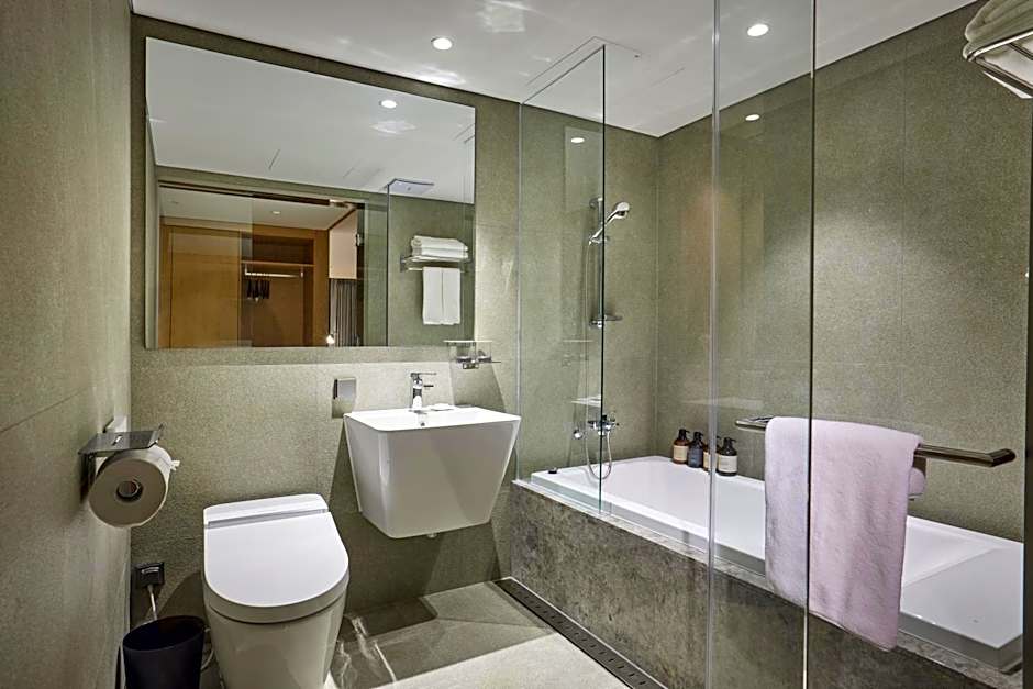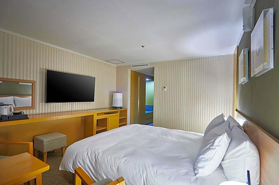 This was the nicest hotel that I stayed in, in SK! I had the smallest room on the floor, but it was still very large - and a corner room with huge windows and amazing views from the 12th floor. Perfect place to watch the sunset, and access the Yuseong Foot Baths (right across the street). It’s a short walk from the subway station and there are several restaurants nearby. The hotel was very clean, elegant with nice bathrobes for guests. The staff were professional and helpful. A lovely place that I highly recommend.