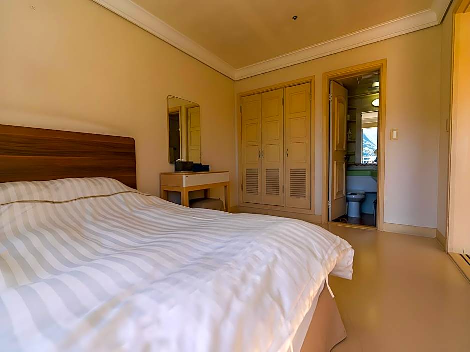 Danyang is a fantastic place - the city of flowers on the shores of a narrow lake. Very walkable, with walking paths across the street that go down to the shore and paths along the street. Sono has a number of hotels in Korea. This is one of the oldest. Our family suite had a kitchenette, with a good size refrigerator and a small 2-burner stovetop. There was a table with 4 chairs in the kitchen and a good size living room with a large couch. The main bedroom had a half bathroom and there was a full bathroom when you entered the suite as well. The second bedroom was ondol style. From the living room and balcony we had great views of the city and the lake. Like the other Sono properties we have stayed at, the rooms are in need of a refresh and renovations. That said, there is a lot to like about this property and the fantastic location: Lots of parking, free A small water park Restaurants in the basement level as well as shops, games, singing rooms for karaoke A fantastic bakery with top quality goods, that offered a big discount after 7pm