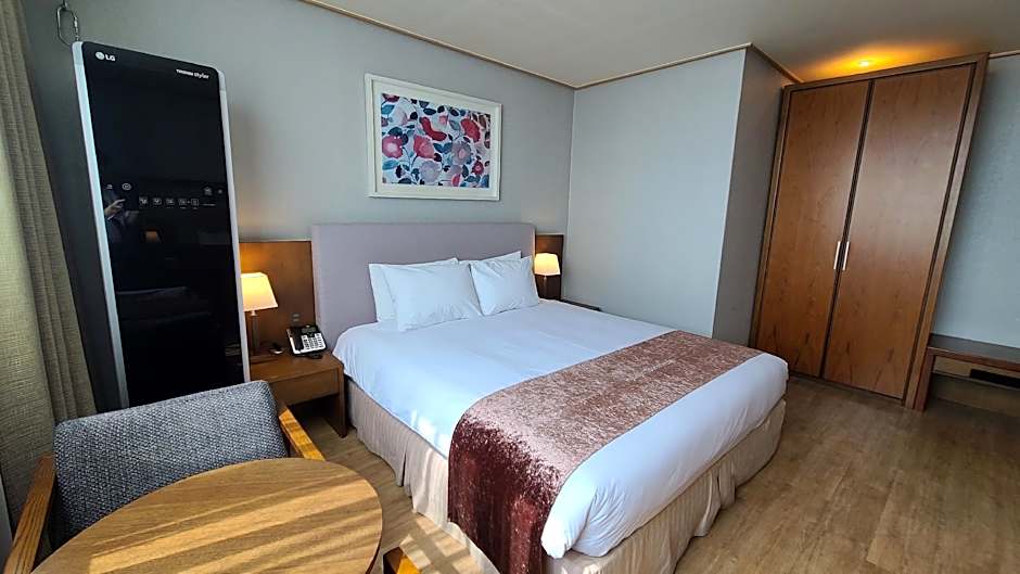 Rooms are equipped with a flat-screen TV, a seating area and a refrigerator. An electric kettle and a tea set are also available in each. The private bathroom comes with a hairdryer, bathrobes and free toiletries. This Korean-style room features traditional bedding and Ondol, Korean floor-heating.